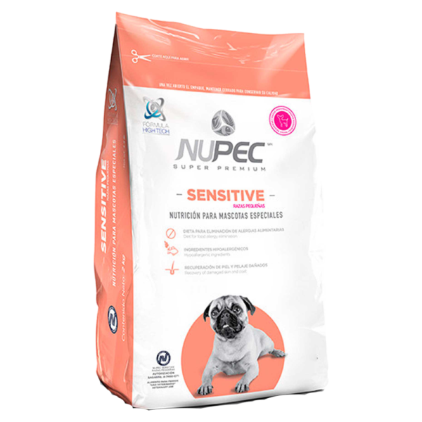 Nupec Sensitive es perfecto para eliminar o atenúar la alergia alimentaria que ya ha desarrollado el perro hacia ciertos ingredientes. El alimento Nupec Sensitive es especial en piel delicada o sensible.
