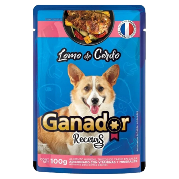 Los sobres de alimento húmedo para perro Recetas Lomo de Cerdo de la marca Ganador tienen un sabor irresistible que le fascinará a tu mascota, además de ingredientes que cumplirán con sus necesidades nutricionales.